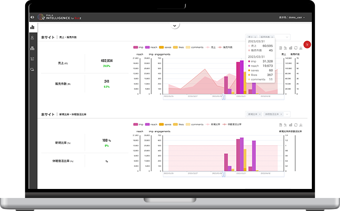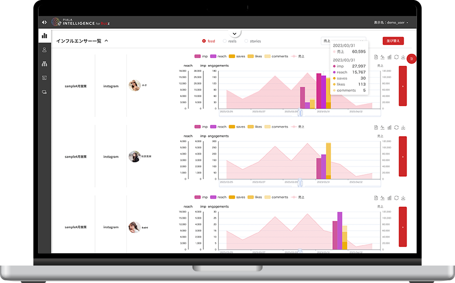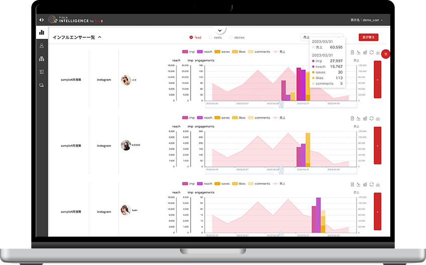 独自ロジックにより算出される最適インフルエンサー予測選出機能※を使いインフルエンサーキャスティングから施策の分析、改善までを一貫して提供する他製品は現存しておりません。